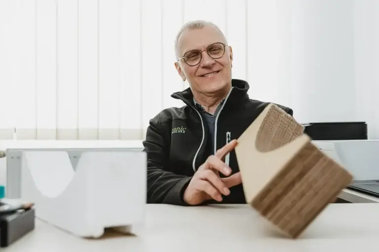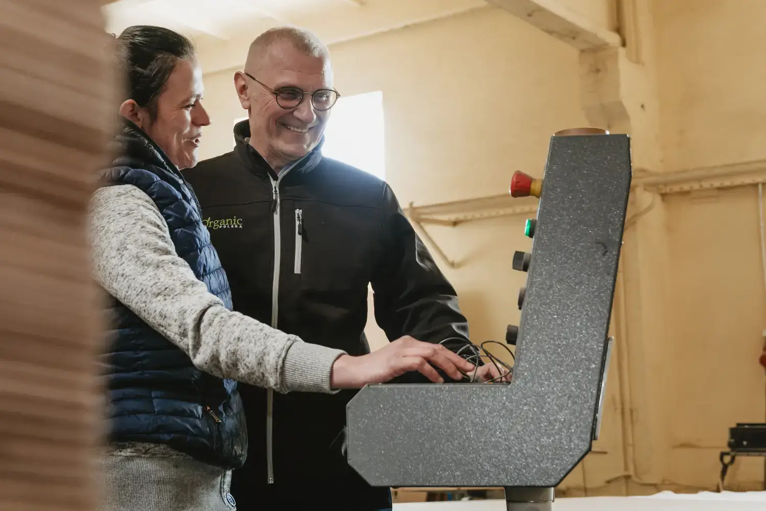 Ensimmäinen liimapuu tehtiin käsin. Vuonna 2016 ostimme ensimmäisen liimauskoneemme. Toinen kone, joka on nykyaikaisempi ja jossa on suurempi työvalo, ilmestyi Organiciin vuonna 2018. Toinen hankinta vuonna 2018 oli vannehtimiskone, joka mahdollistaa ammattimaisemman pakkaamisen, ja käsittelykone, jonka avulla voimme valmistaa suuria ja monimutkaisia stanssattuja pakkauksia. Kaiken kaikkiaan vuosi 2018 oli Organic Polandissa merkittävien muutosten vuosi. Vaihdoimme pääkonttoriamme niin, että tuotanto-, varasto- ja toimistotilamme kaksinkertaistuivat.